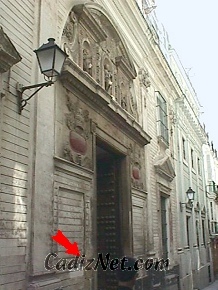 Estando frente a la portada barroca de mármol de la iglesia del Rosario, podemos ver en su lado izquierdo, un pequeño aviso para que los gaditanos practicaran la caridad.